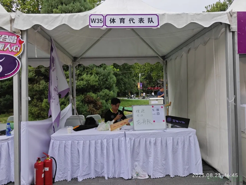 在本科新生入学当天(蹭体育代表队的帐篷)预招新
